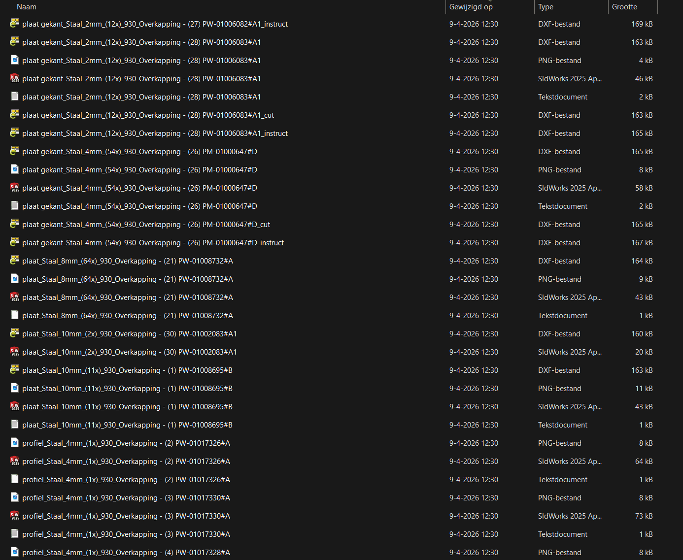 Exporteer alles gestructureerd, met alle informatie die je nodig hebt (inclusief thumbnails en flatpatterns). Alle informatie wordt opgeslagen zoals jij het wilt, klaar om direct in CAM verwerkt te worden. Plus een directe koppeling met je ERP of softwarepakket voor verdere verwerking.