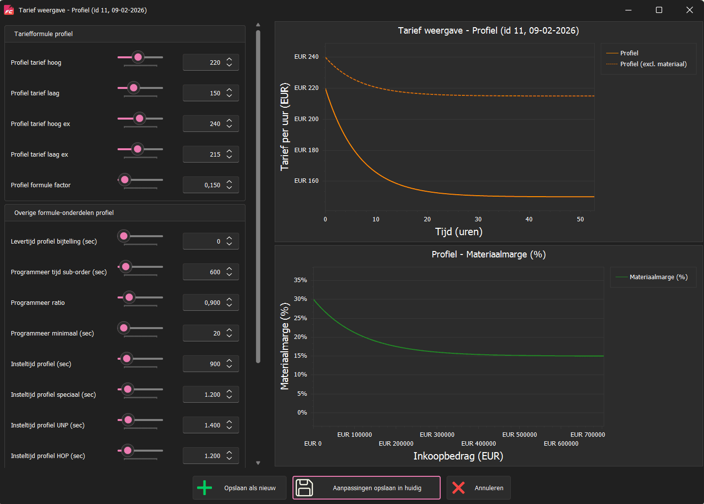 Van formule-aanpassingen tot grenzen op uurtarieven. Volledig (visueel) aanpasbaar voor elke situatie. Standaard- én eigen bewerkingen worden ondersteund, waarbij gebruikgemaakt wordt van de eigenschappen van de onderdelen.