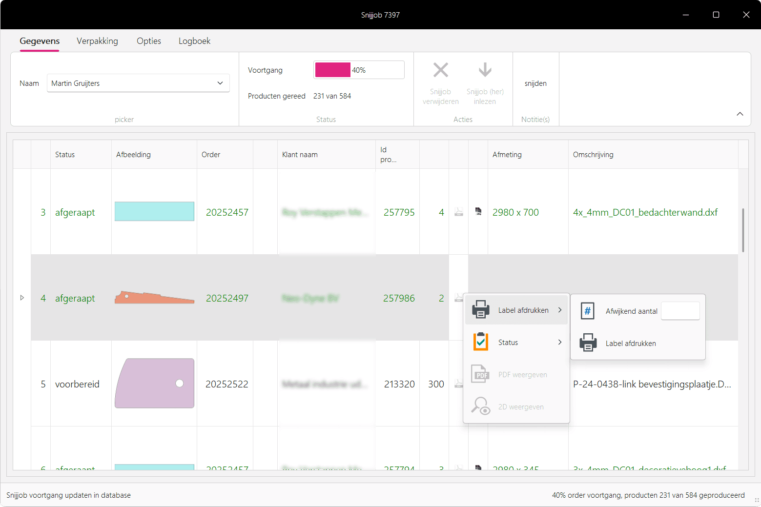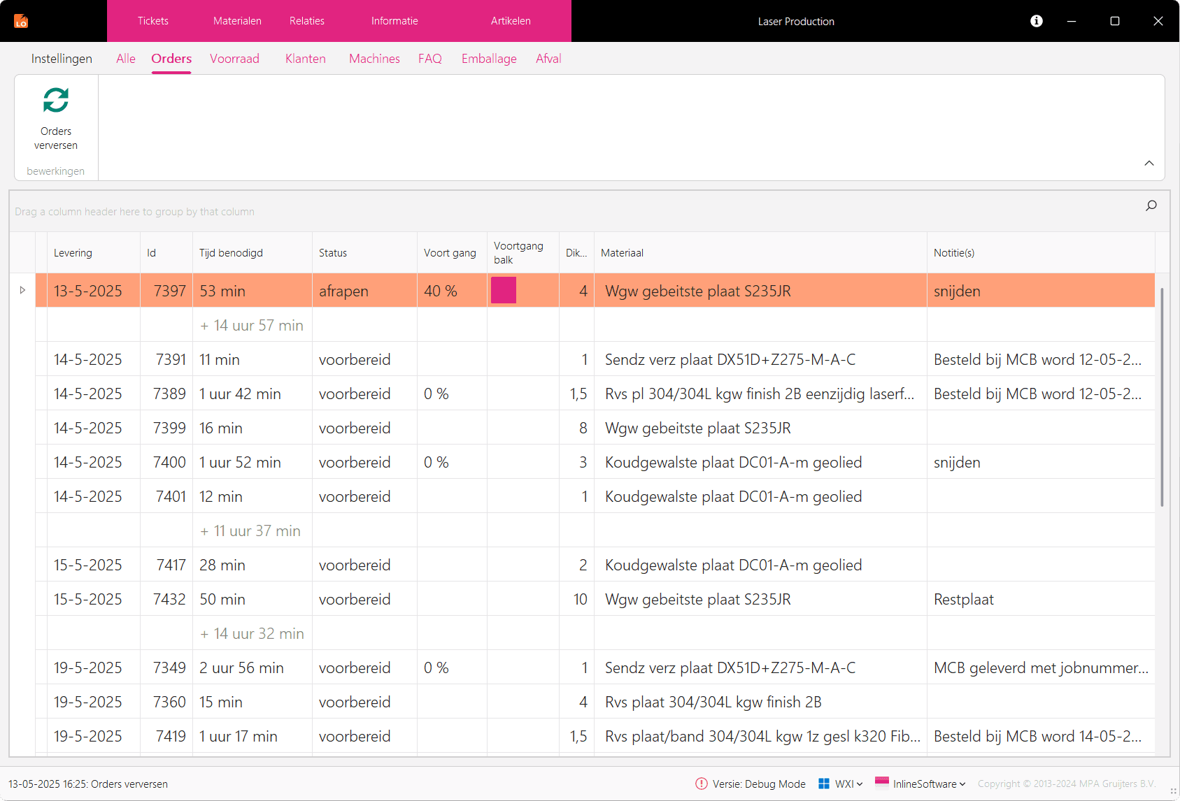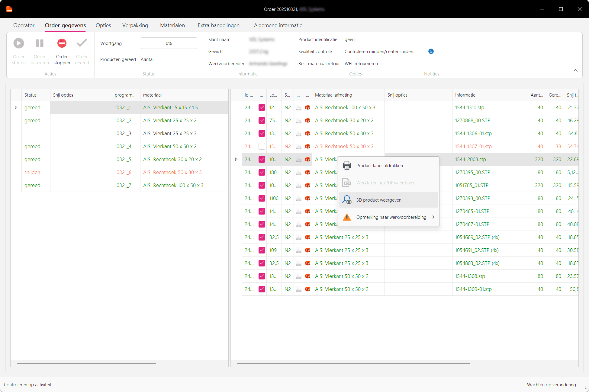 Door de directe koppeling met buis- en plaatlasers, hou je controle zonder handmatige tussenkomst. Slimme functies zoals automatische pakbonnen, werktekening-koppelingen en order-splitsing zorgen voor rust, overzicht en efficiëntie.