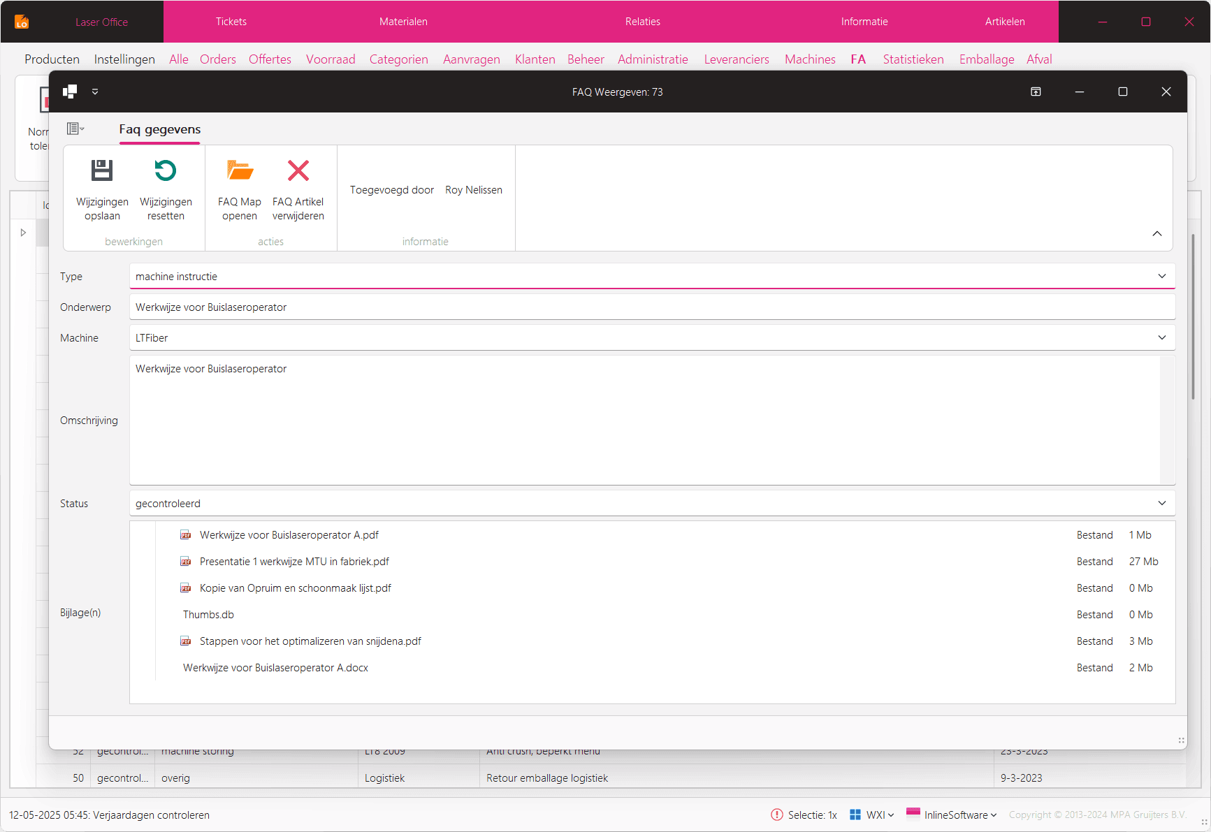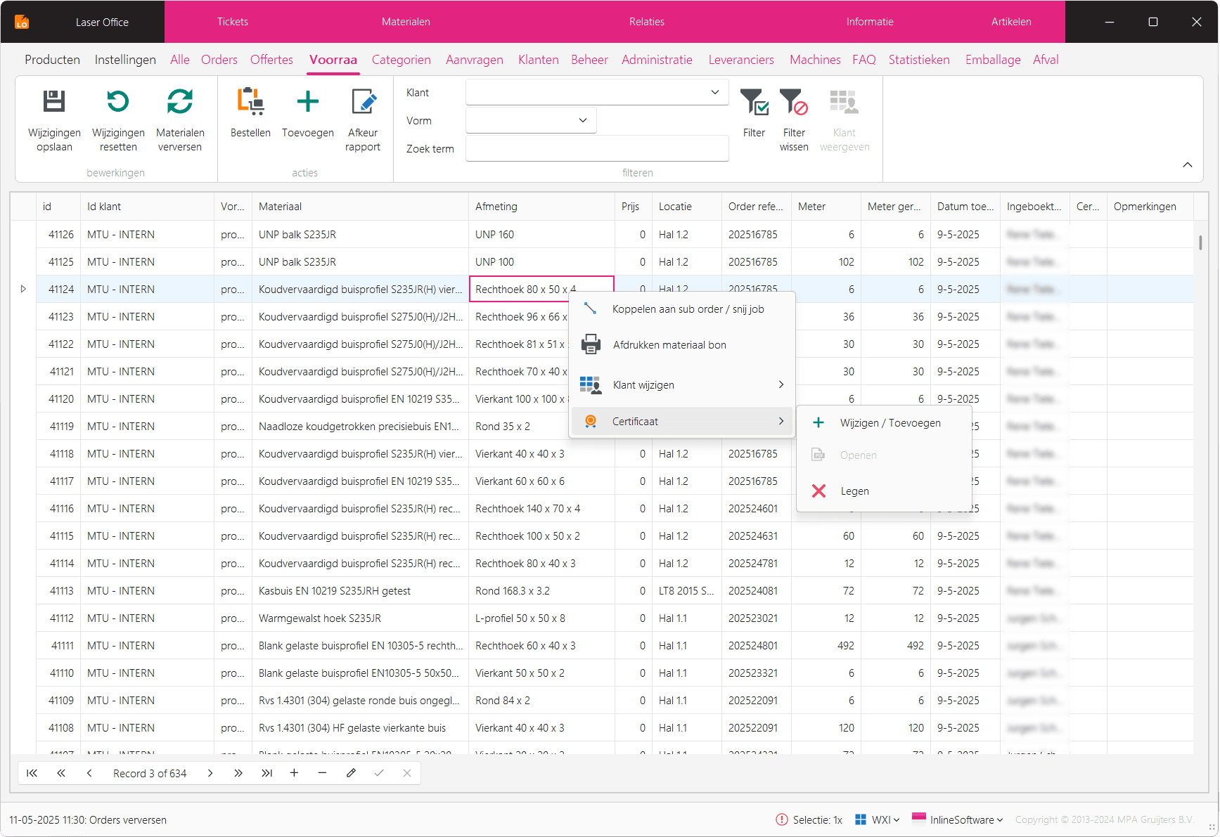 Van aanvraag tot aflevering. LaserOffice combineert planning, voorraad beheer, documenten beheer, certificaten, klantbeheer in één krachtig platform.