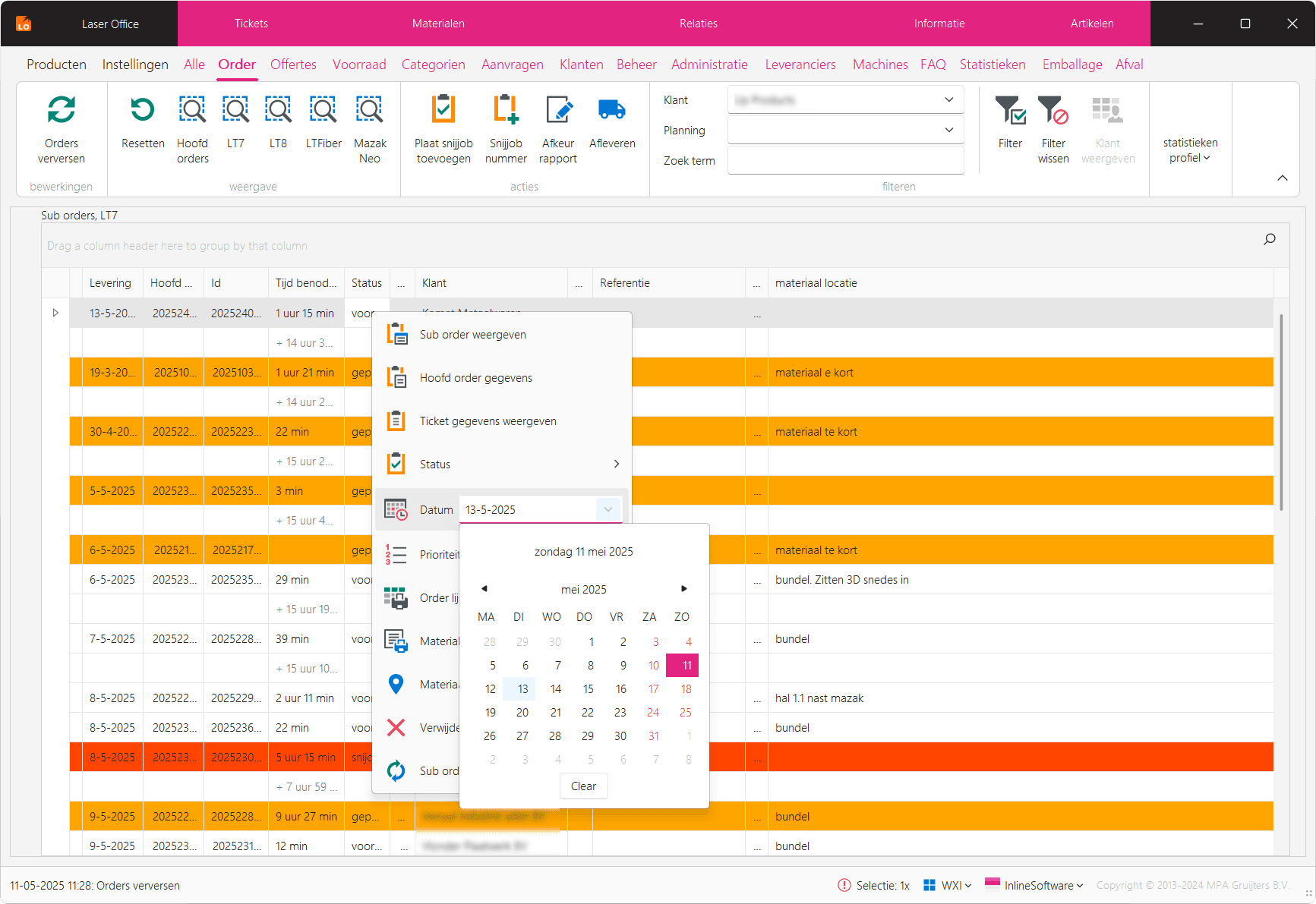 Tot in details, van aanpassingen leverdatums tot planning overzichten. Compleet overkoepelend of machine specifiek. Voorkom gemiste levertijden door het vooruitkijkende systeem.